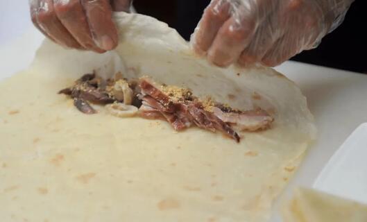 吃上一卷香噴噴的豬頭肉卷餅,又來一卷土豆絲卷餅,再來一碗加了蔥末、香菜末、胡椒粉的鮮美煮肉原湯,肉香面香蔥香在口腔里混合,這才能品味到“大塊朵頤”的真正含義。